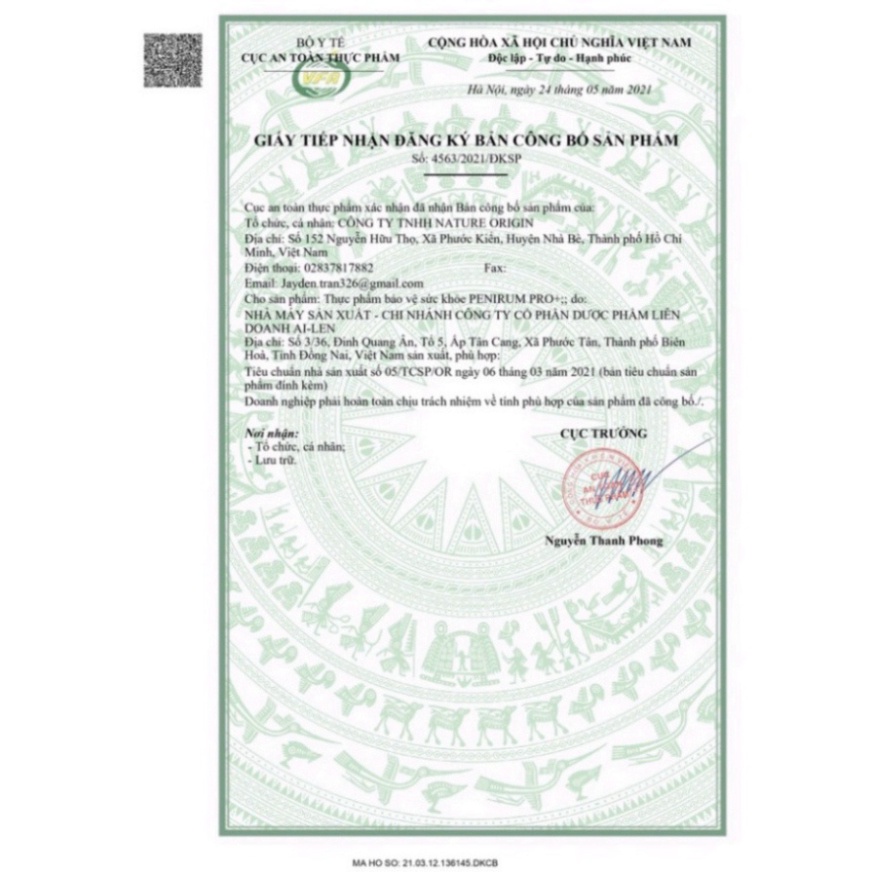 Sản phẩm được nghiên cứu và sản xuất bởi công ty TNHH Dược phẩm Hồng Phát và sau đó được phân phối tại thị trường Việt Nam và đã được Bộ Y tế cấp phép sử dụng và lưu hành.