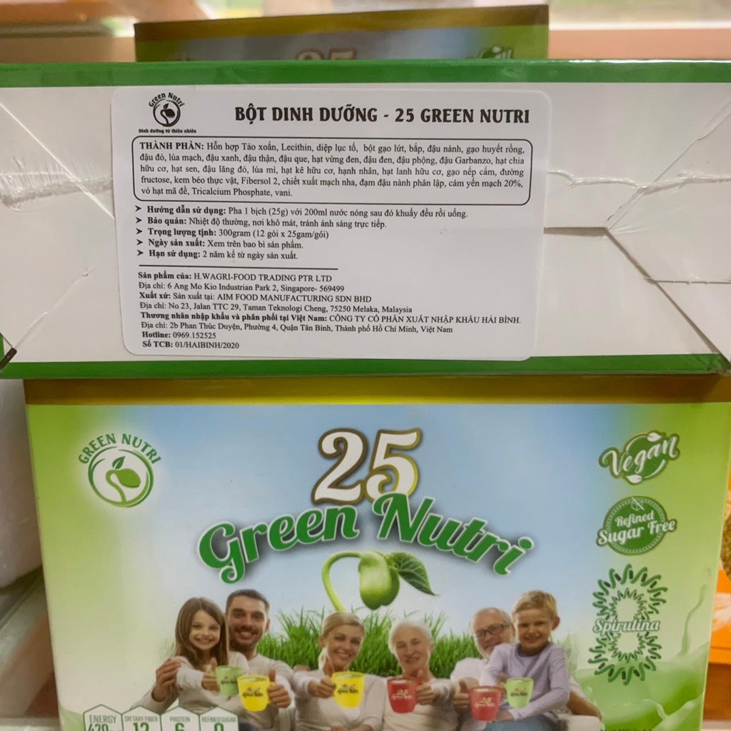 25 Green Nutri là sản phẩm thuần chay, không chứa đường tinh luyện và có thể thay thế cho bữa ăn phụ. Sản phẩm phù hợp với mọi lứa tuổi, hương vị tự nhiên, thơm ngon, dễ uống, dễ hấp thu.