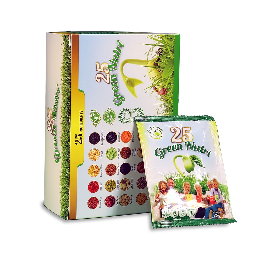 25 Green Nutri là sản phẩm thuần chay, không chứa đường tinh luyện và có thể thay thế cho bữa ăn phụ. Sản phẩm phù hợp với mọi lứa tuổi, hương vị tự nhiên, thơm ngon, dễ uống, dễ hấp thu.