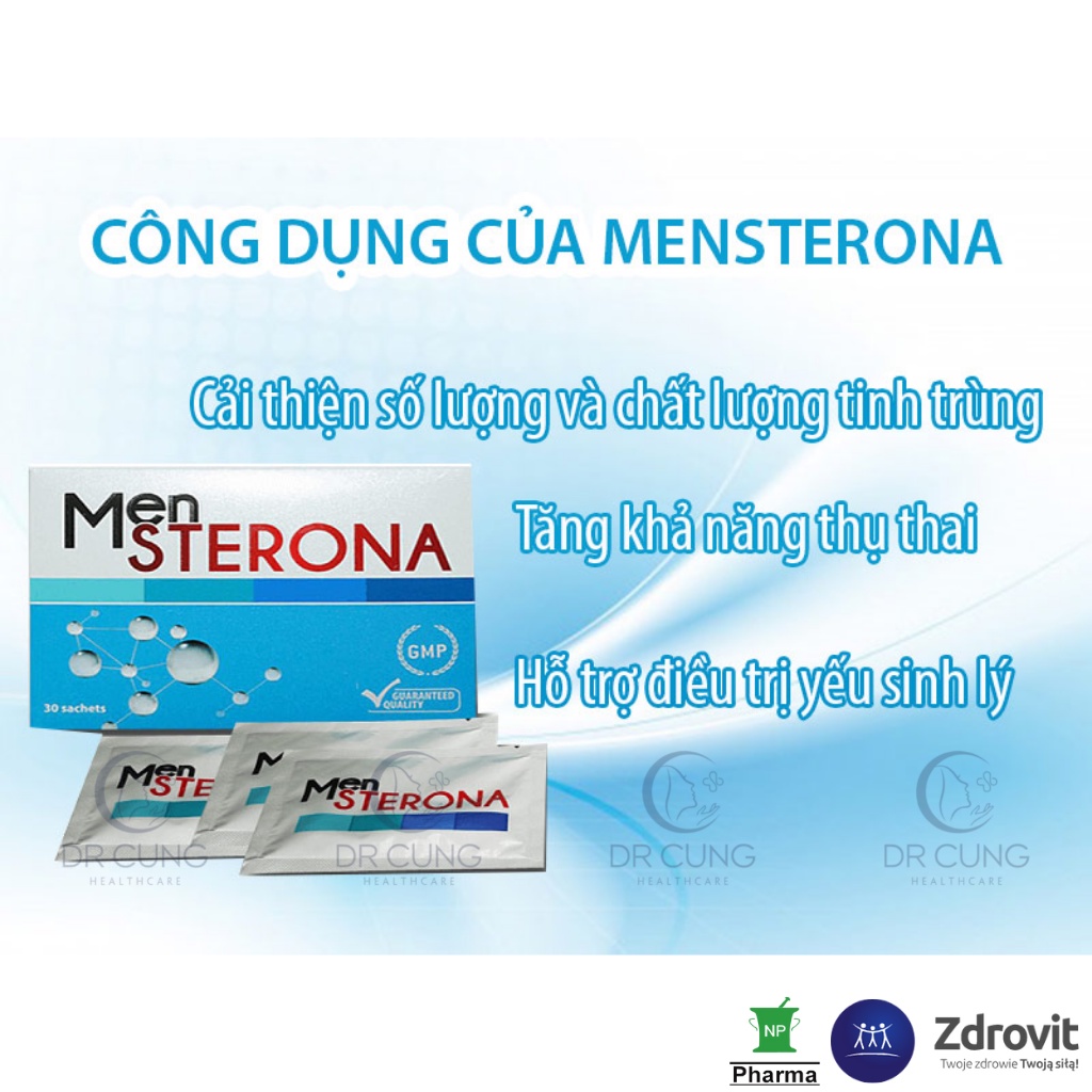 Mensterona là sản phẩm giúp tăng khả năng sinh sản cho nam giời, sản phẩm chứa nhiều dược chất cần thiết cho sự phát triển và trưởng thành của tinh trùng. Các thành phần của sản phẩm tác động vào đầu của quá trình sinh tinh, cả quá trình phát triển của tinh trùng cho tới việc ảnh hưởng tới môi trường tồn tại của tinh trùng sau khi trưởng thành. Theo đánh giá từ nhiều BS trên Thế giới thì Mensterona là một sản phẩm tốt, ít tác dụng phụ thuộc nhóm các sản phẩm đi đầu trong hỗ trợ cải thiện số lượng, chất lượng, và giảm dị dạng cho tinh trùng cho nam giới.