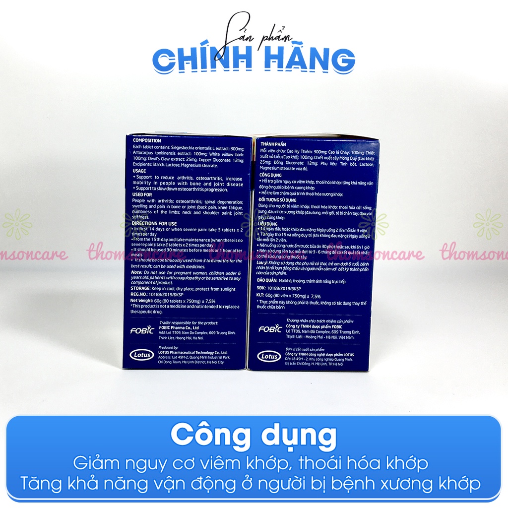 Mỗi viên chứa: Cao hy thiêm: 300mg; cao lá chay: 100mg; chiết xuất vỏ liễu (cao khô -15% Sali -cin): 100mg; Chiết xuất cây móng quỹ (cao khô -20% Harpagosides): 25mg; ĐỒng gluconate: 12mg.