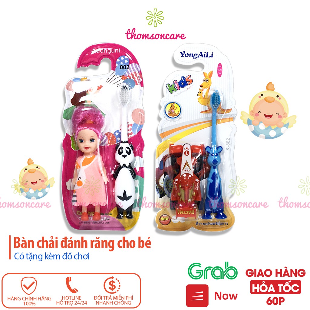 Bàn chải đánh răng cho bé, tặng kèm đồ chơi ngộ nghĩnh cho trẻ.