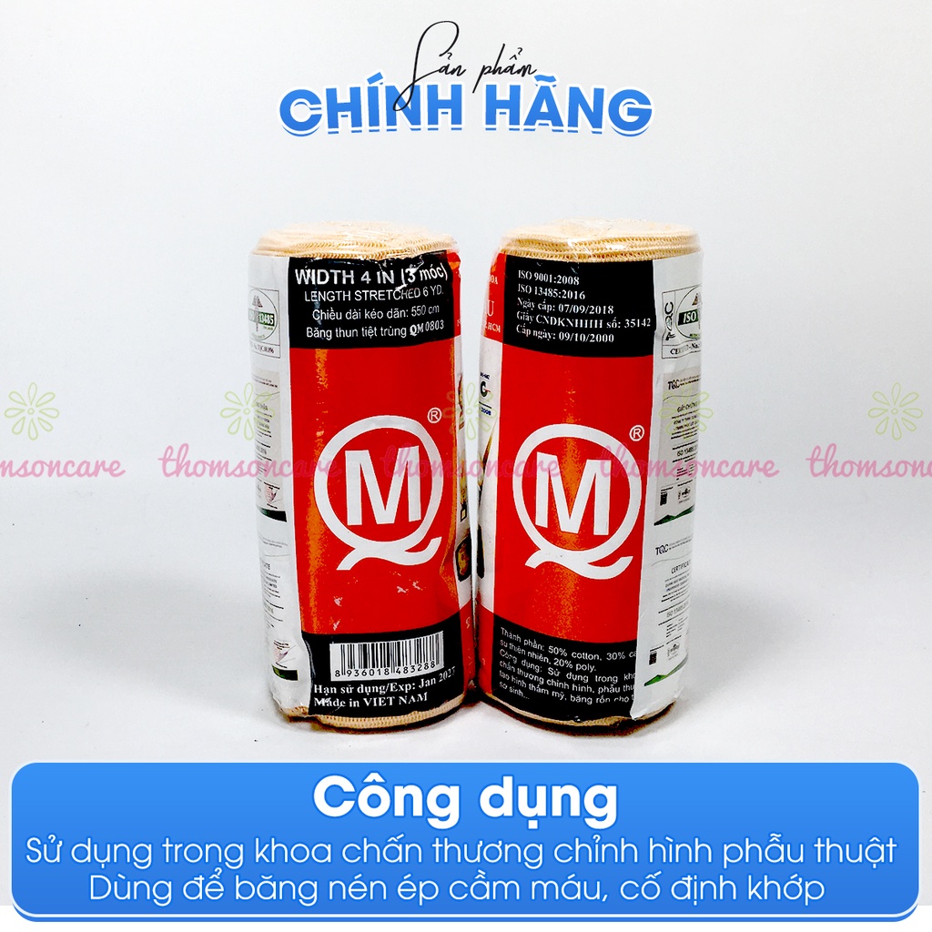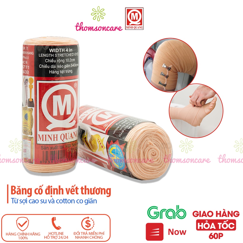 Băng chun vải co giãn bó gối, cổ tay, cố định vết thương Minh Quang, băng thun y tế.