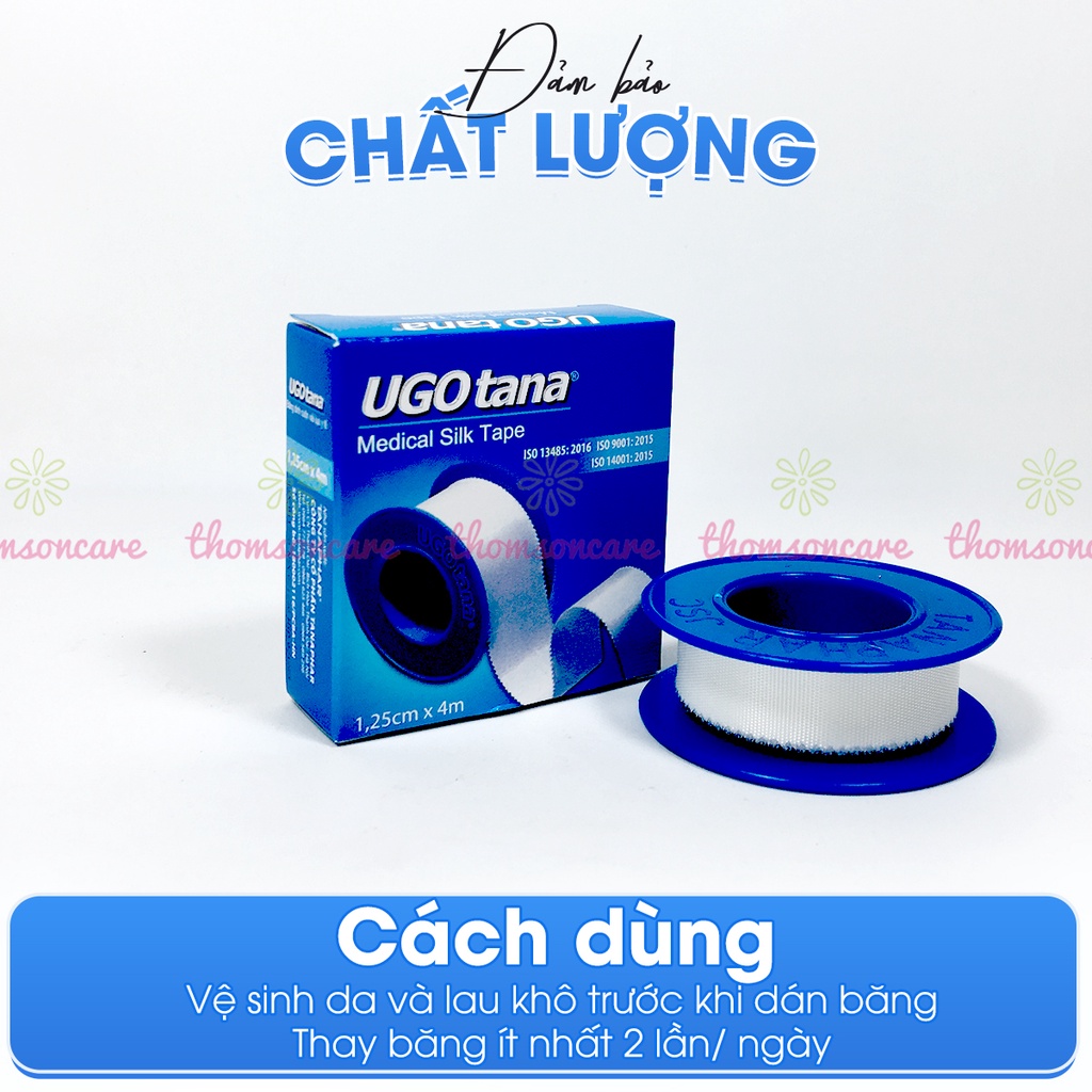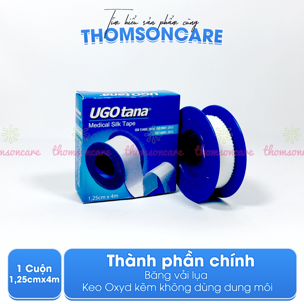 Băng keo lụa y tế UGOTANA kích thước 1,25cm x 4m – độ dính cao, mềm, sơ cứu băng vải dính vết thương.