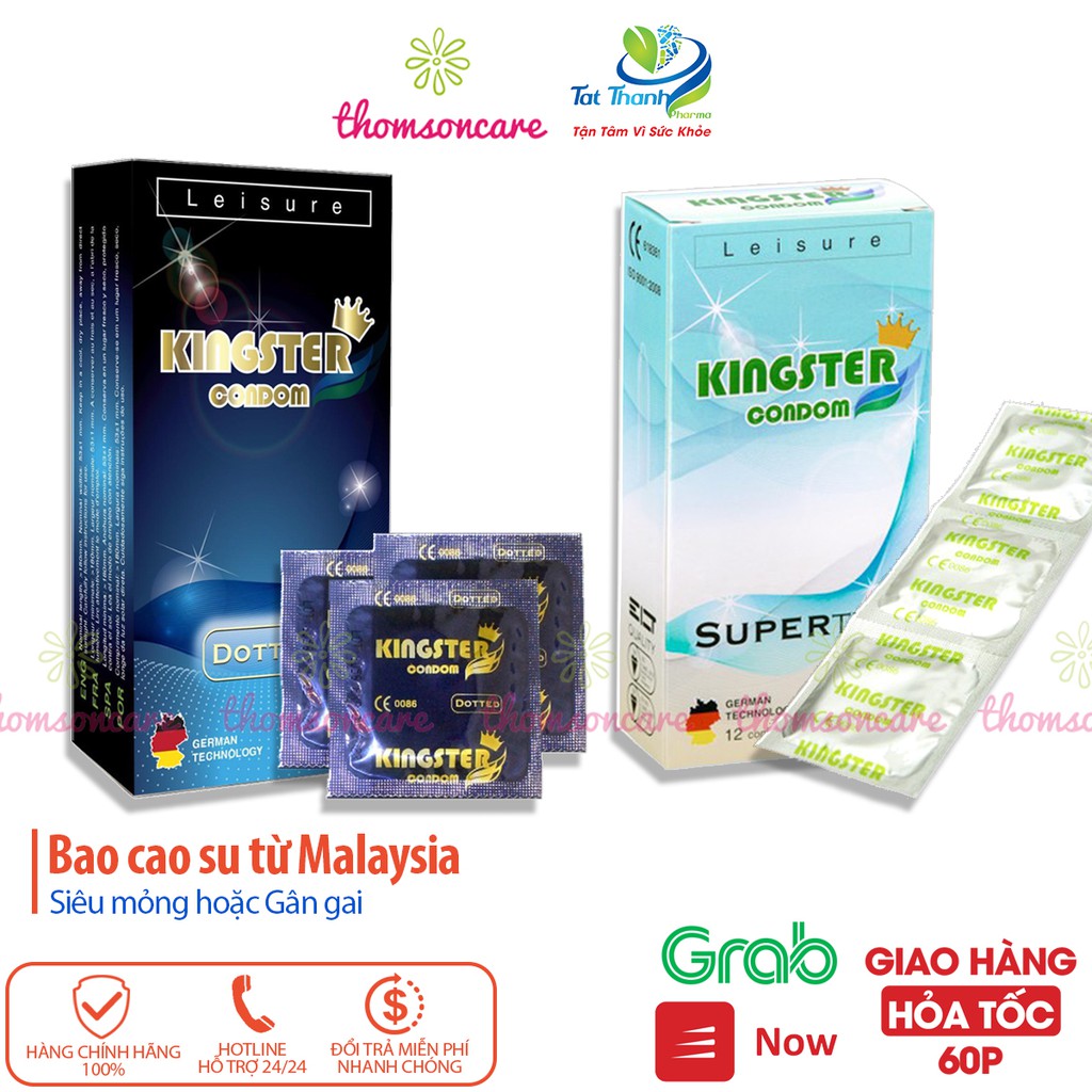 Bao cao su Kingster từ Malaysia, có hộp 12c hoặc 3c