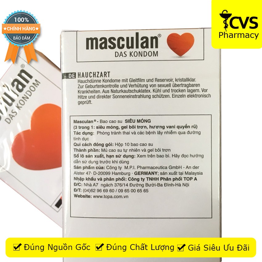 Bao cao su Masculan trắng, siêu mỏng – Hộp 10 cái – Masculan Pure Superfine cvspharmacy