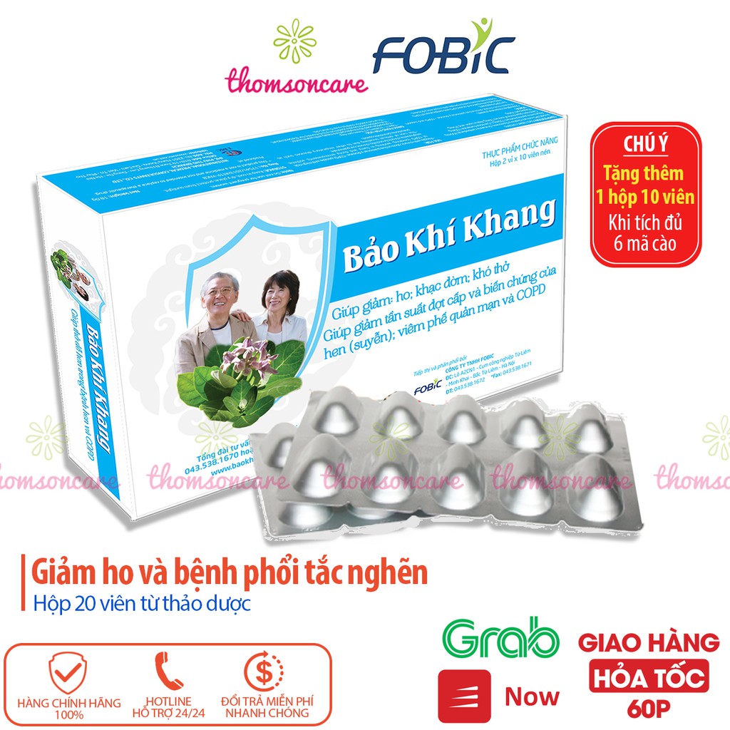 Bảo khí khang Mua 6h tặng 1h bằng tem tích điểm – hộp 20 viên dạng vỉ hỗ trợ giảm đờm ho khó thở, phế quản.