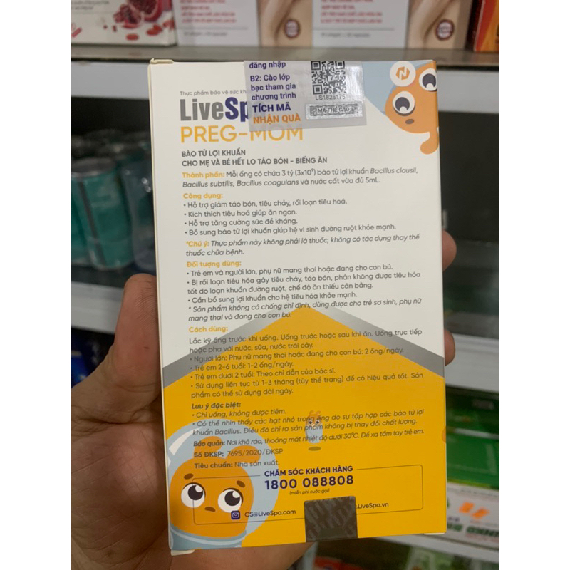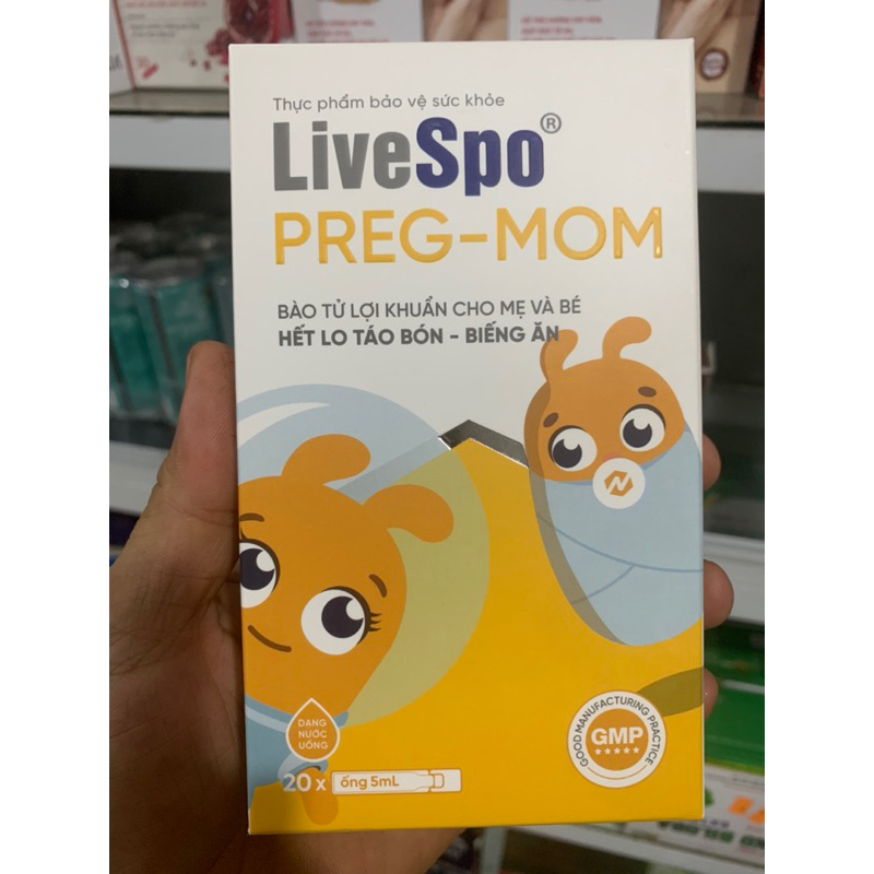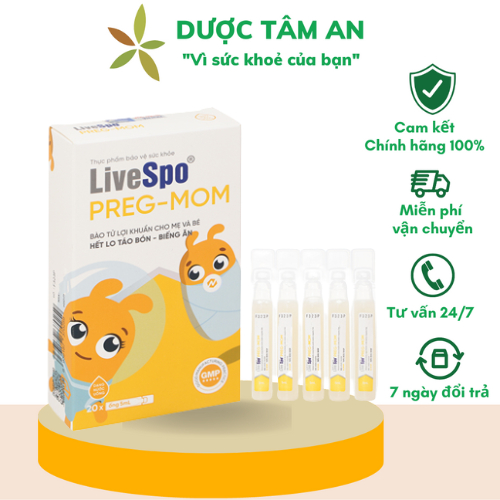 Rối loạn tiêu hóa, táo bón, tiêu chảy là những hiện tượng về đường ruột làm cho bất kỳ ai cũng cảm thấy khó chịu và ảnh hưởng nghiêm trọng tới sức khỏe. Nhất là trẻ nhỏ và mẹ bầu là hai đối tượng dễ bị mắc phải các bệnh đường ruột. Chính vì vậy, bổ sung các loại thực phẩm bảo vệ đường ruột giúp tăng cường sức đề kháng đường ruột nhiều hơn. Bào tử lợi khuẩn LiveSpo Pregmom sẽ là một gợi ý hoàn hảo để ba mẹ có thể tham khảo cho sức khỏe của gia đình mình. Mỗi ống bào tử lợi khuẩn LiveSpo Pregmom có chứa 3 tỷ lợi khuẩn của 3 loài bào tử B.clausii, B. coagulans và B.subtilis cao hơn rất nhiều lần trong sữa chua và bằng 100 gói men vi sinh khác, giúp chống lại và cải thiện rối loạn tiêu hóa, tiêu chảy, táo bón; giúp trẻ kích thích ăn ngon hơn và hấp thu thức ăn tốt hơn. Ngoài ra sản phẩm còn sử dụng rất an toàn cho mẹ bầu, mẹ sau sinh, và mọi lứa tuổi.