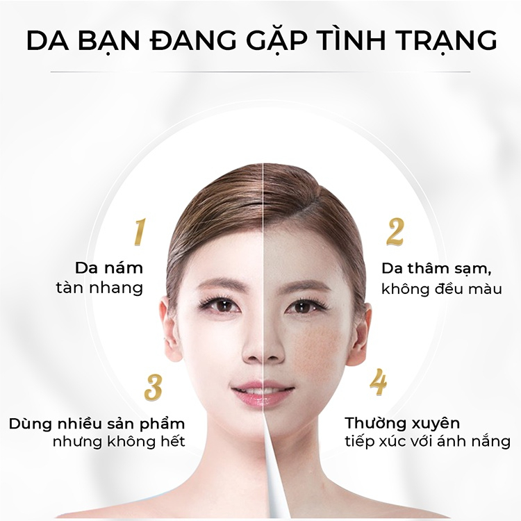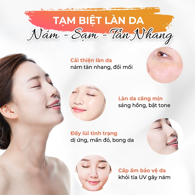 ● Loại bỏ được các loại nám – Tàn nhang lâu năm khác nhau như nám mảng, nám hỗn hợp, nám đốm
