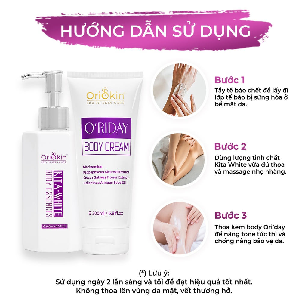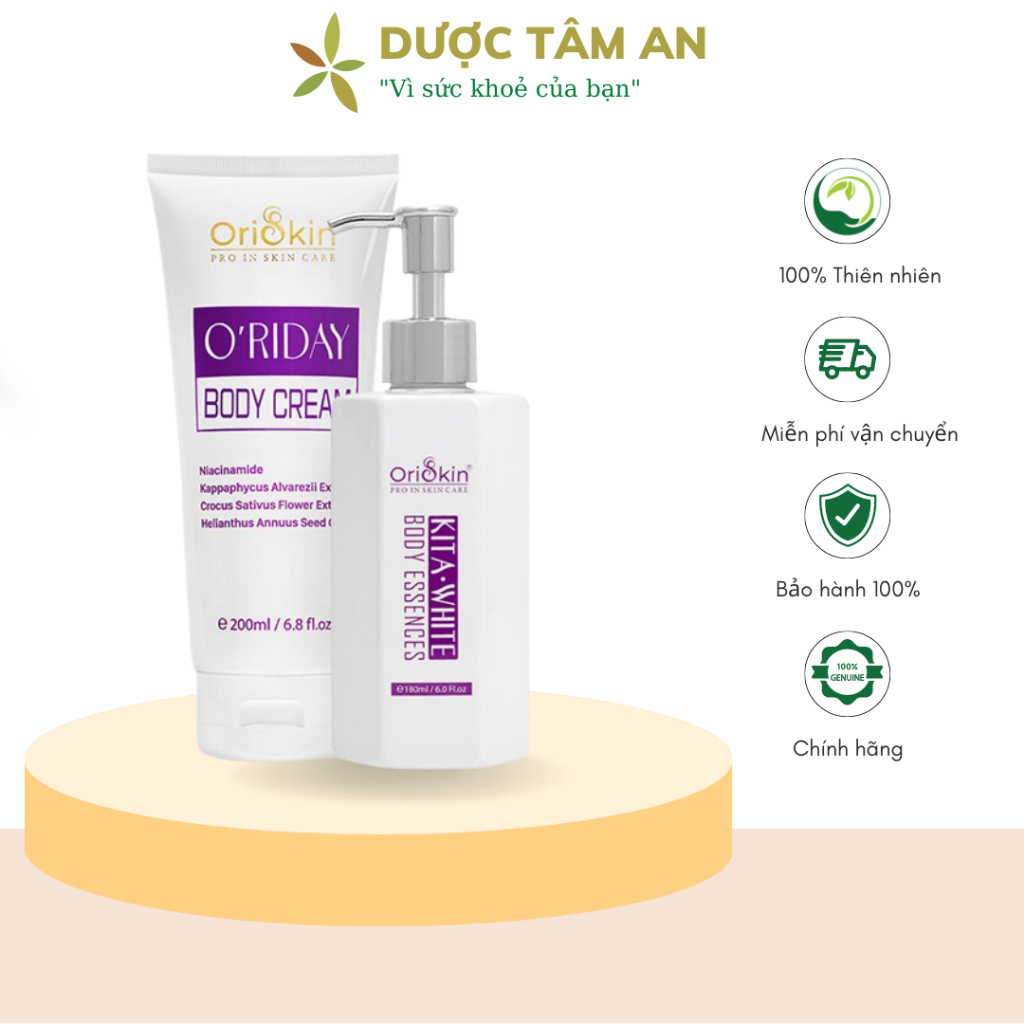 Bộ Dưỡng Trắng, Cấp Ẩm Body Gồm Sữa Dưỡng Trắng Da Kita White Body Essences 180ml Và Kem Dưỡng Da Body Ori’day Body Cream 200ml