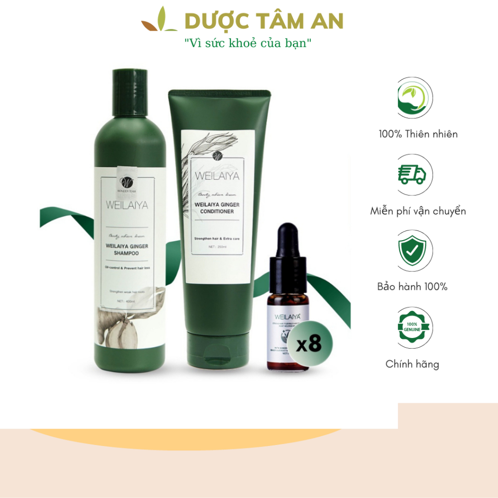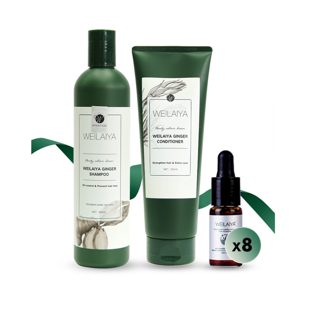 Bộ sản phẩm dầu gội, dầu xả thảo dược gừng trắng và Tinh dầu dưỡng Weilaiya ngăn rụng và kích thích mọc tóc cho da dầu