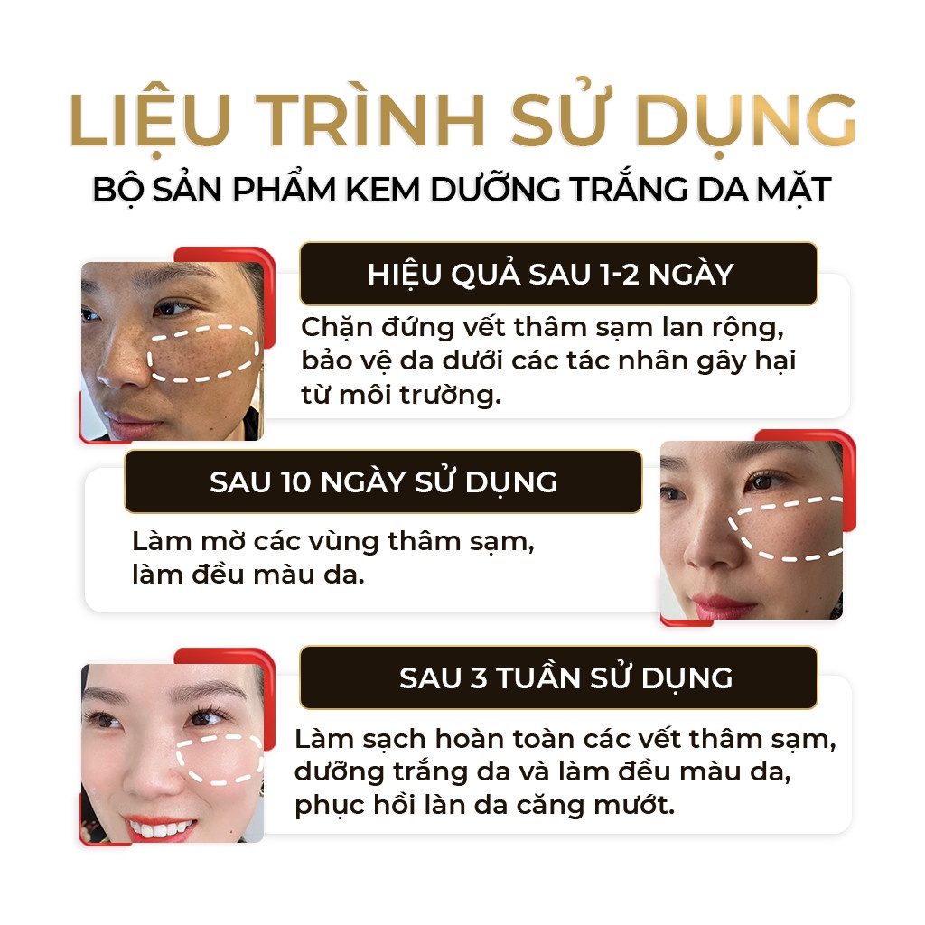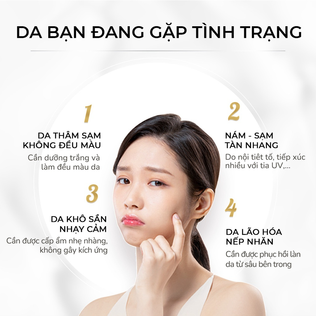 Bộ sản phẩm dưỡng da trắng sáng, mờ thâm nám, tàn nhang, phục hồi làm da hư tổn, dành cho mọi loại da ngay cả da nhạy cảm.