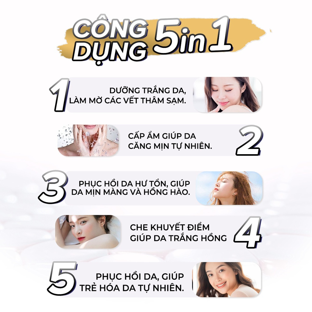 ● Hỗ trợ dưỡng ẩm dưỡng trắng cho da dầu, da nhạy cảm, nhanh chóng chỉ sau 2 tuần Dưỡng da phục hồi sau mụn, làm mờ vết thâm mụn hiệu quả.