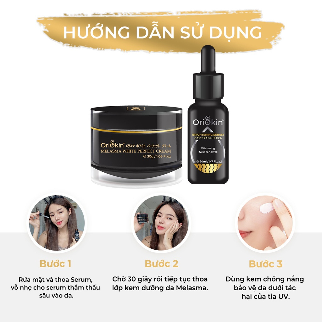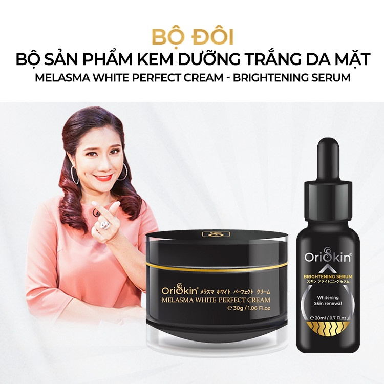 Bộ Sản Phẩm Kem Dưỡng Trắng Da Mặt Melasma White Perfect 30g, Serum Cho Da Nhạy Cảm Oriskin Brightening Serum 20ml