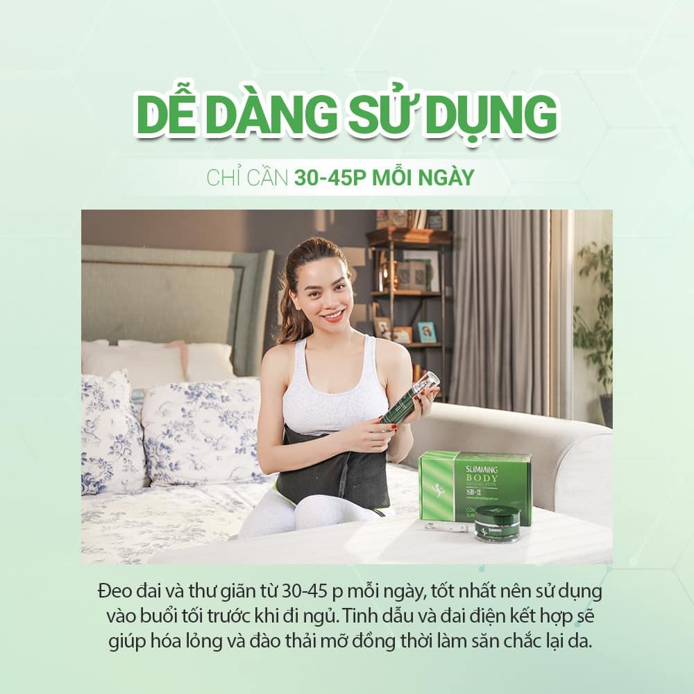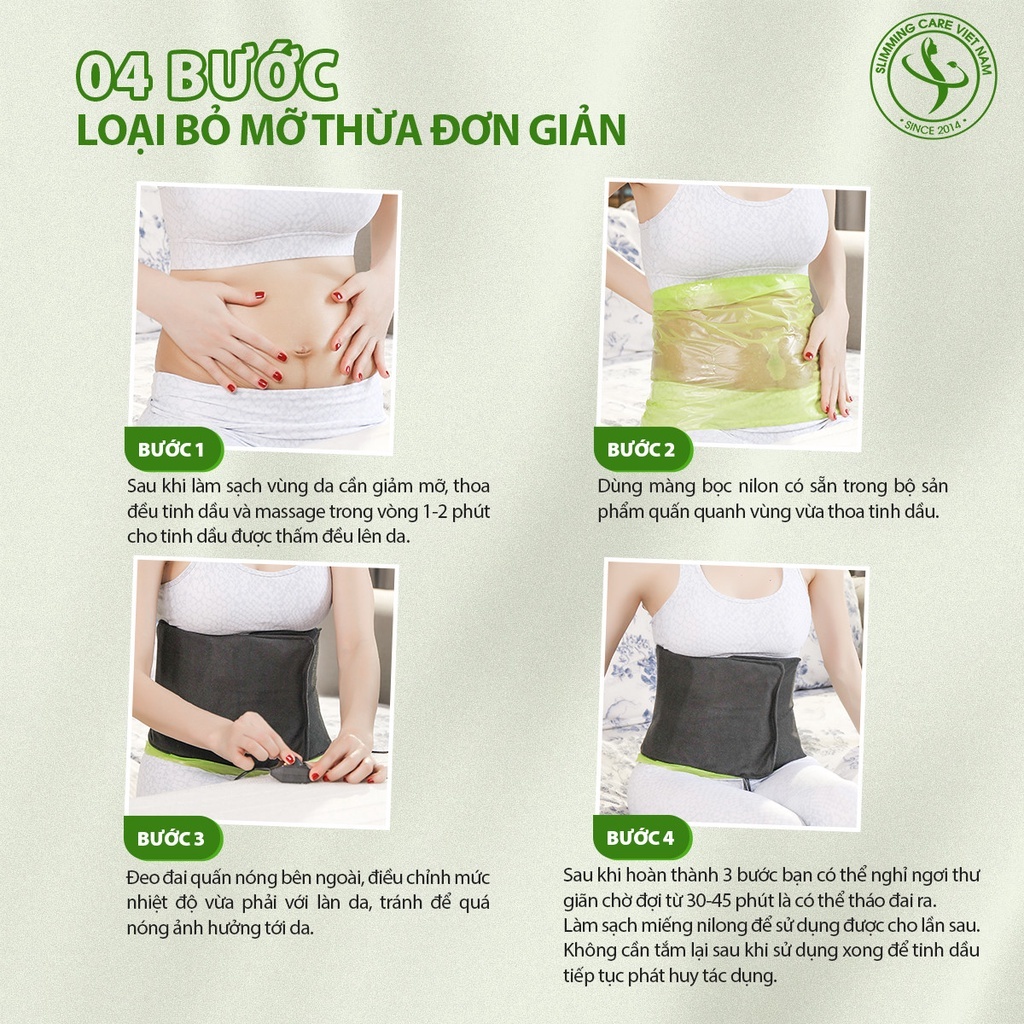 Sử dụng tinh dầu slimming body hàng ngày cùng đai cuốn nóng điện trước khi đi ngủ 30 phút là giải pháp hữu hiệu nhất để nói lời rời xa “vòng eo bánh mì” của bạn.