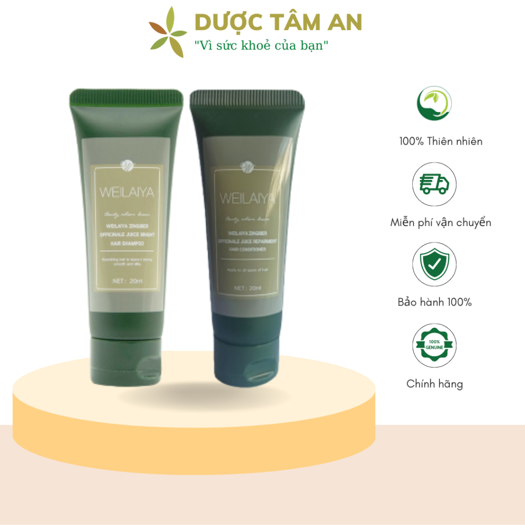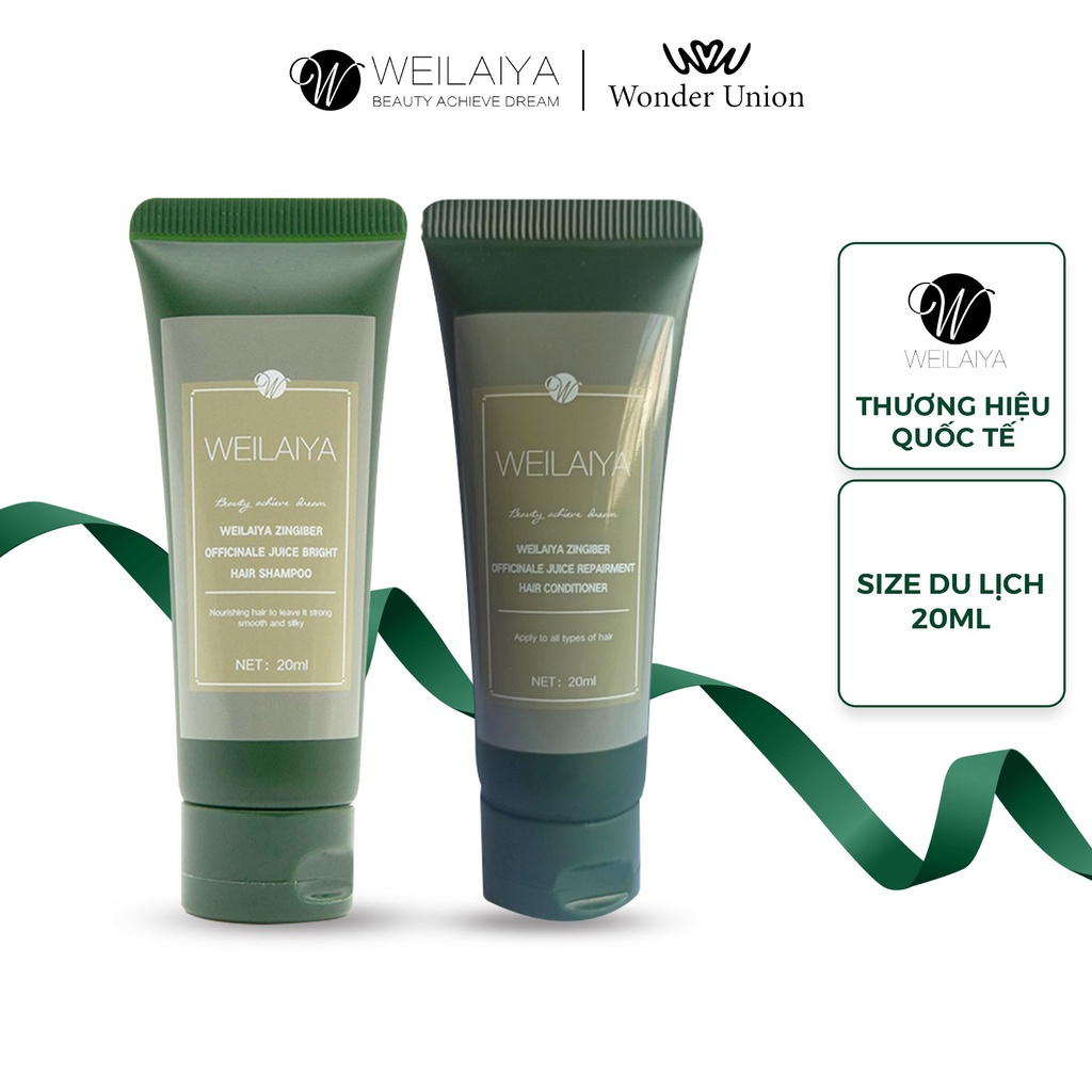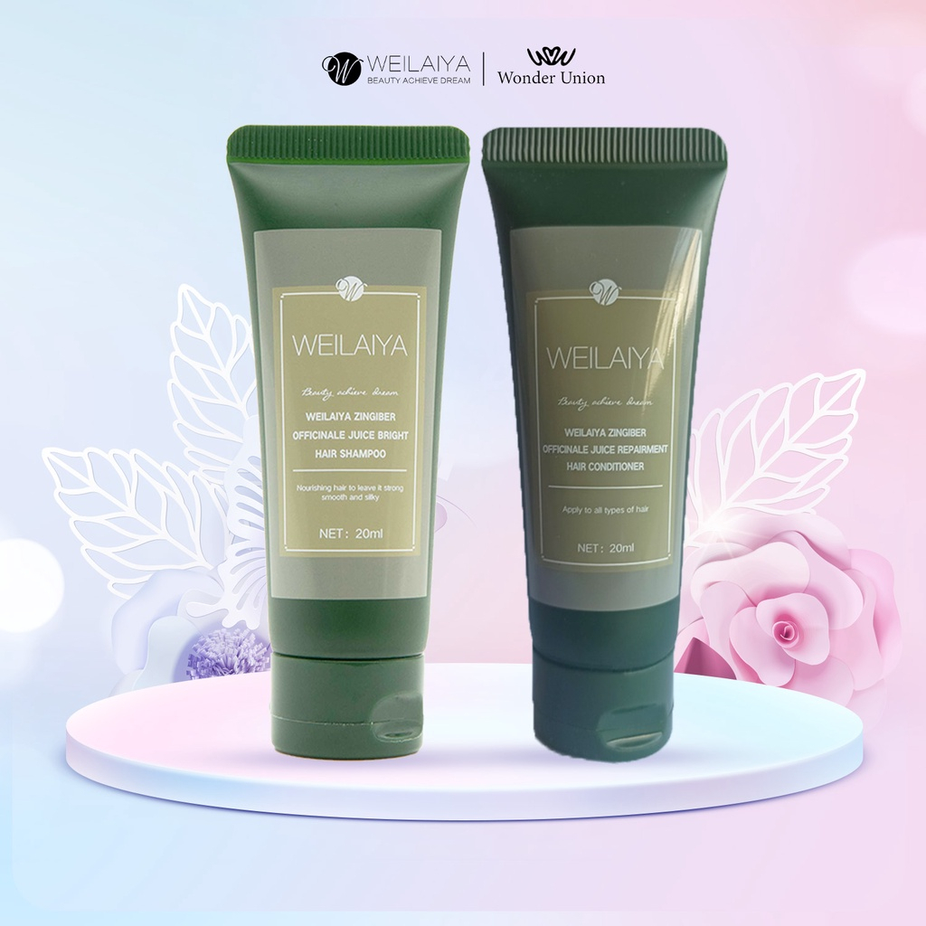 Cặp dầu gội đầu và dầu xả tóc thảo dược Weilaiya gừng hà thủ ô giúp dưỡng, đen và kích thích mọc tóc size du lịch 20ml