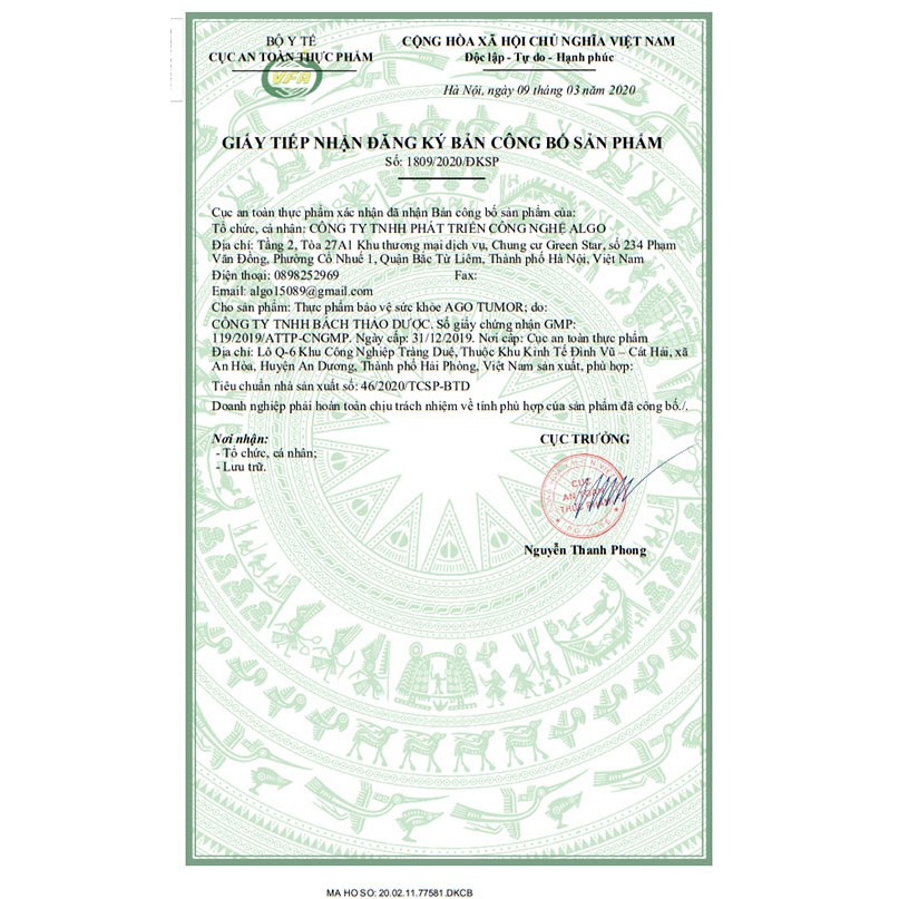 Sản phẩm Ago Tumor không phải là thuốc, không có tác dụng thay thế thuốc chữa bệnh.