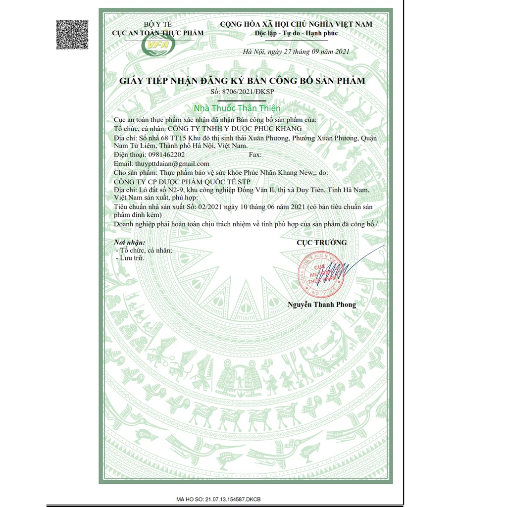 Thương nhân chịu trách nhiệm về chất lượng sản phẩm: CÔNG TY TNHH Y DƯỢC PHÚC KHANG