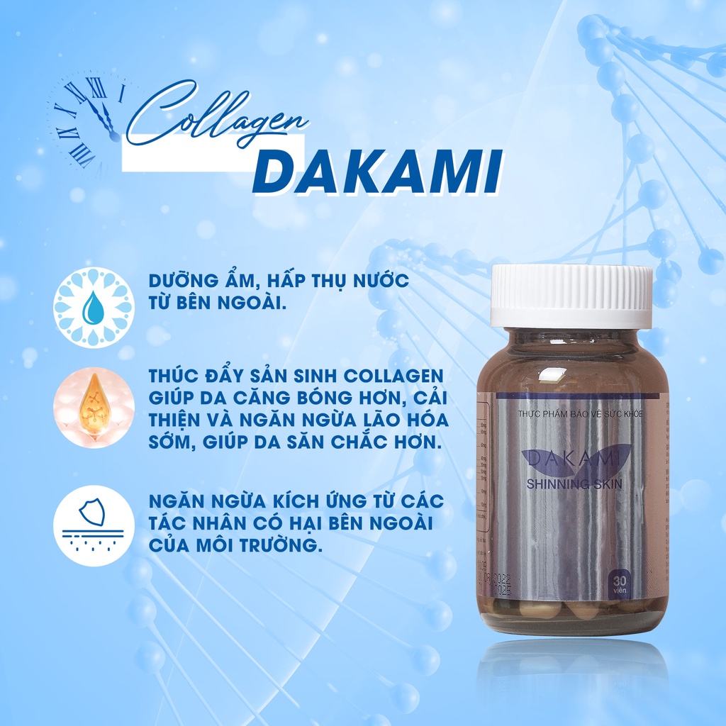 Collagen Dakami II – Dưỡng trắng da, mờ thâm nám, chống lão hoá da hộp 30 viên