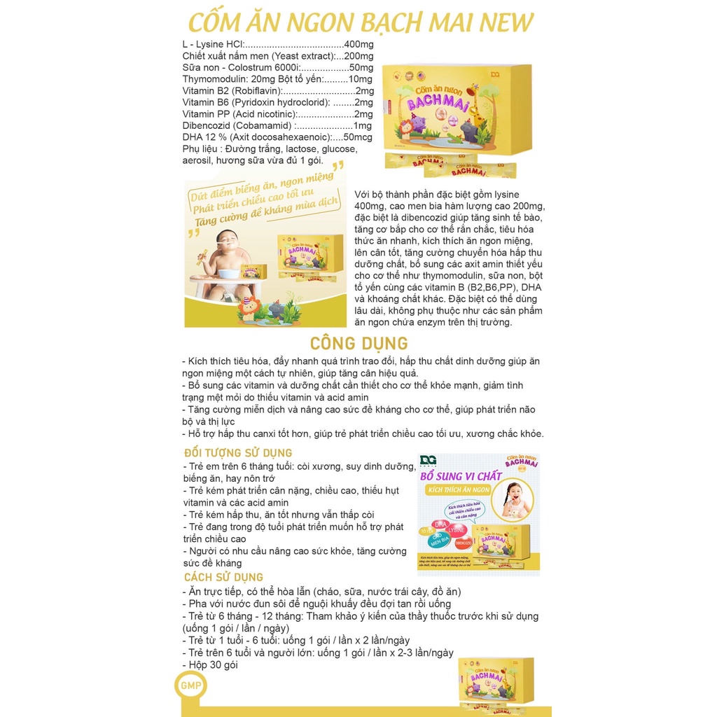 Cốm ăn ngon Bạch Mai NEW là một giải pháp hữu hiệu giúp cho bé ăn ngon, tăng cân, tăng cường hấp thu chất dinh dưỡng, tăng cường sức đề kháng. Cốm tăng cân Bạch Mai cũng được rất nhiều các chuyên gia dinh dưỡng khuyên dùng.