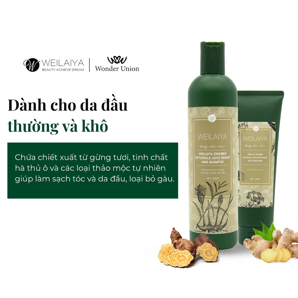 Combo 2 Cặp dầu gội đầu và dầu xả tóc thảo dược Weilaiya gừng hà thủ ô giúp dưỡng, đen và kích thích mọc tóc