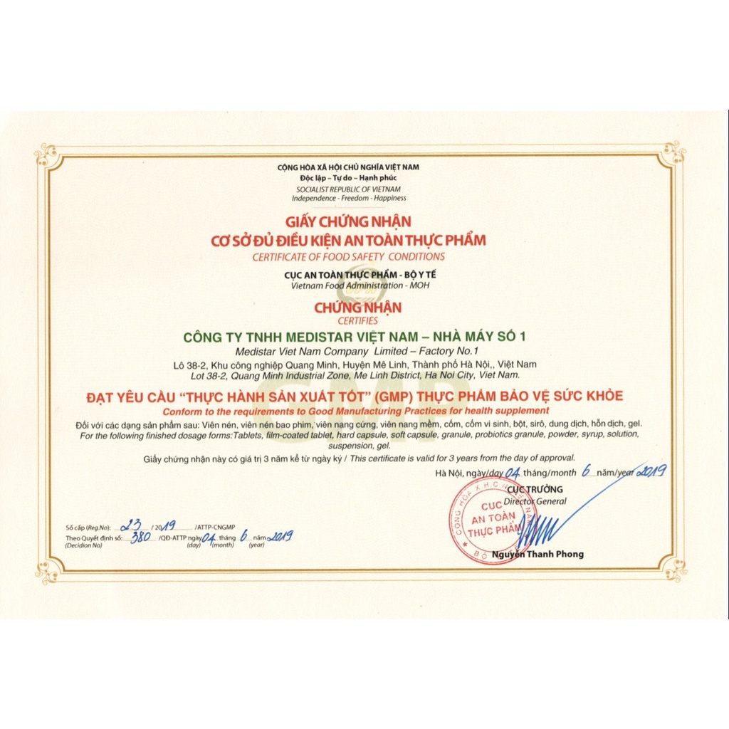 Sản xuất tại: CÔNG TY TNHH MEDISTAR VIỆT NAM – NHÀ MÁY SỐ 1