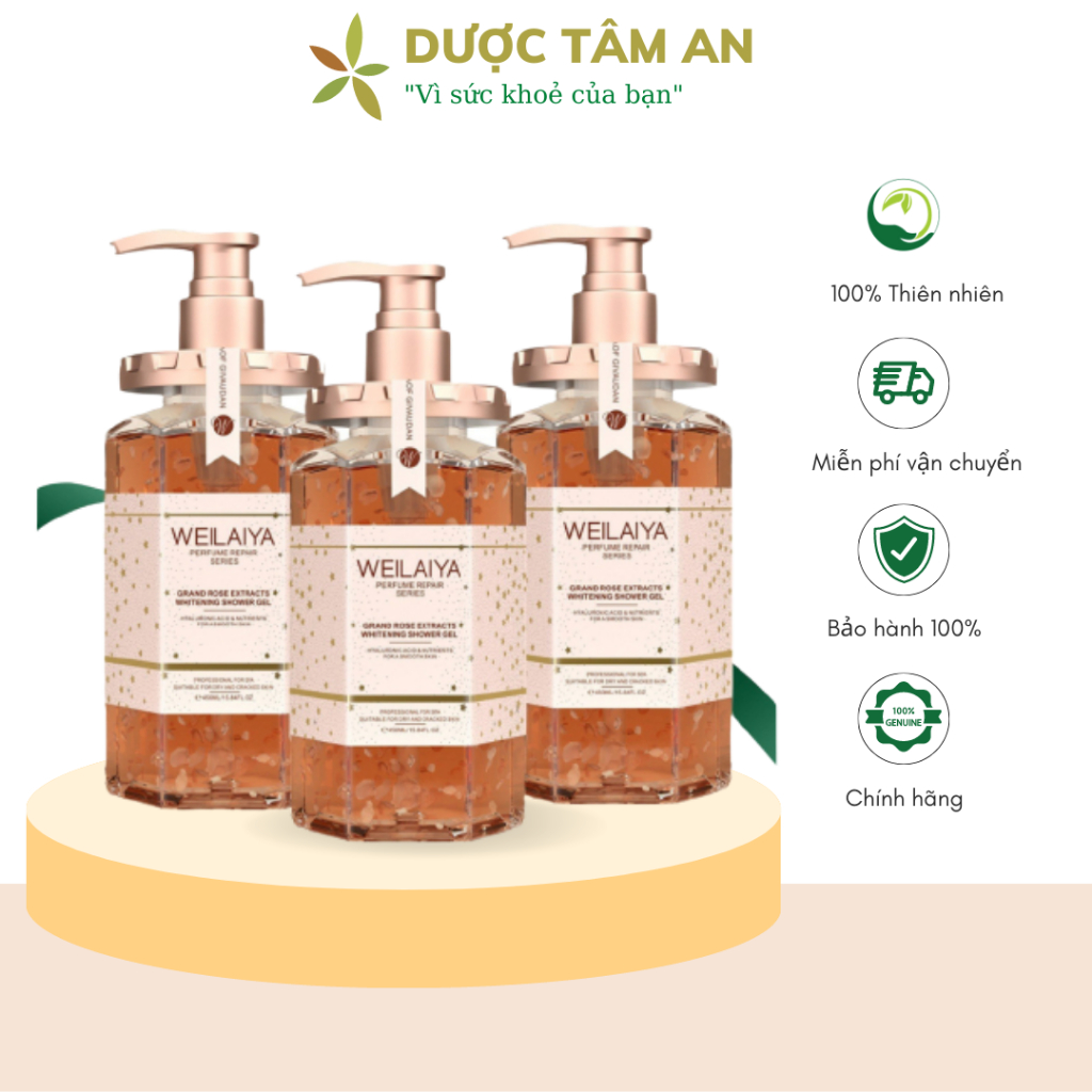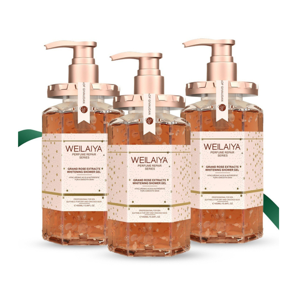Combo 3 chai Sữa tắm nước hoa, trắng da toàn thân Damask Weilaiya chiết xuất cánh hoa hồng phù hợp cho mọi loại da 450ml