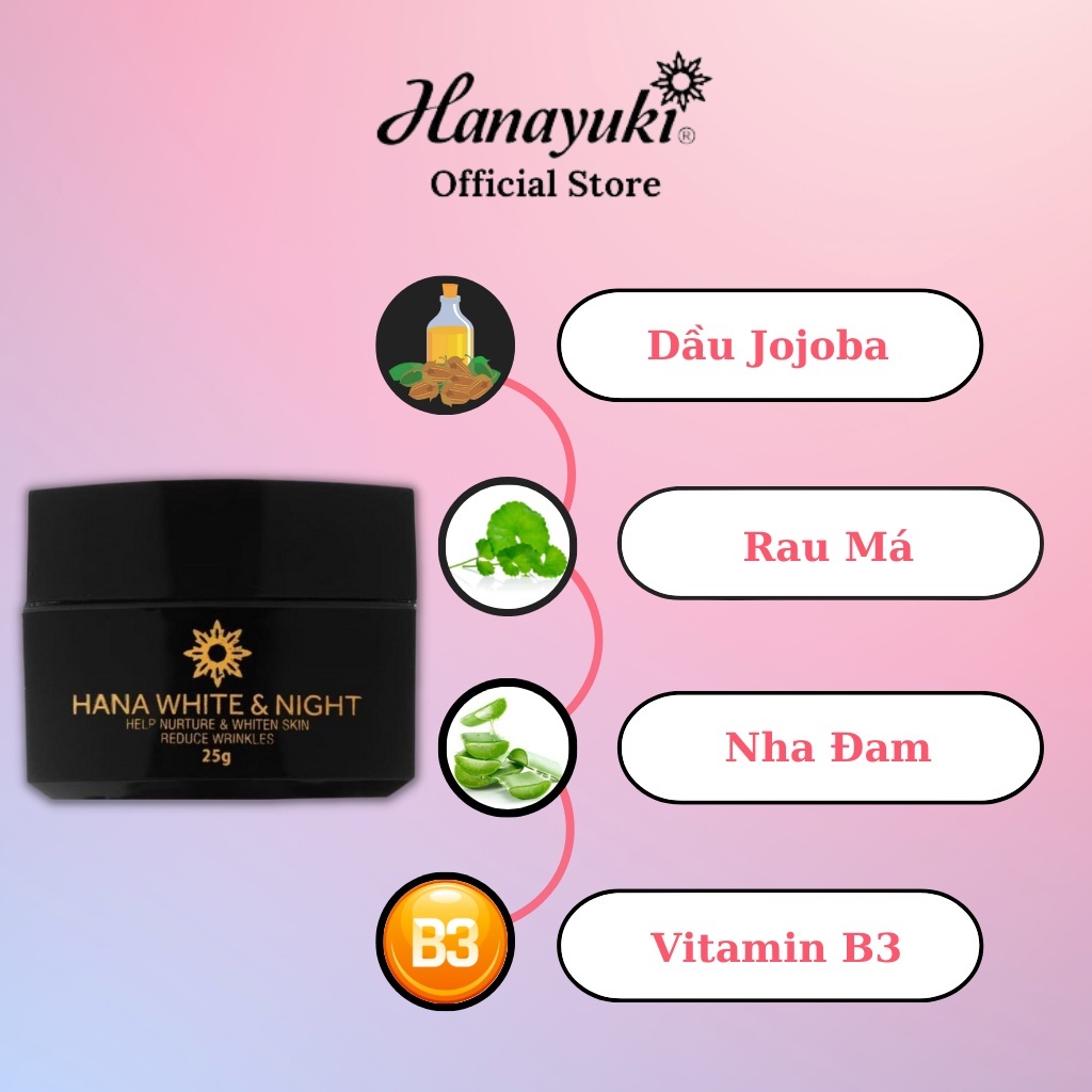 Kem Dưỡng Trắng Da Mặt Hana White Night, Kem Face Dưỡng Ẩm Da Mặt Ban Đêm Hanayuki Chính Hãng 25g