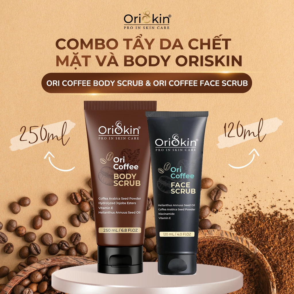 Combo Tẩy Tế Bào Chết Cà Phê Da Mặt Ori Coffee Face Scrub 120ml và Tẩy Tế Bào Body Ori Coffee Body Scrub 250ml