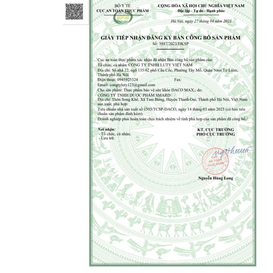 Nhà sản xuất: CÔNG TY TNHH DƯỢC PHẨM SMARD