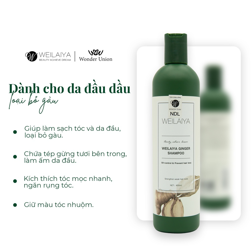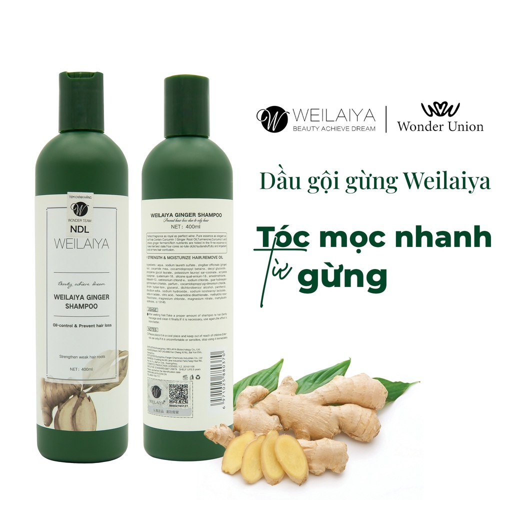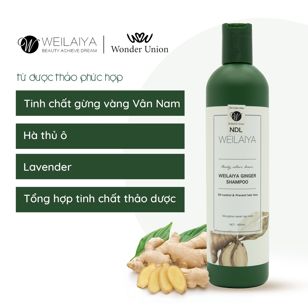 Dầu gội đầu thảo dược Weilaiya Ginger Shampo gừng trắng giúp ngăn rụng và kích thích mọc tóc 400ml
