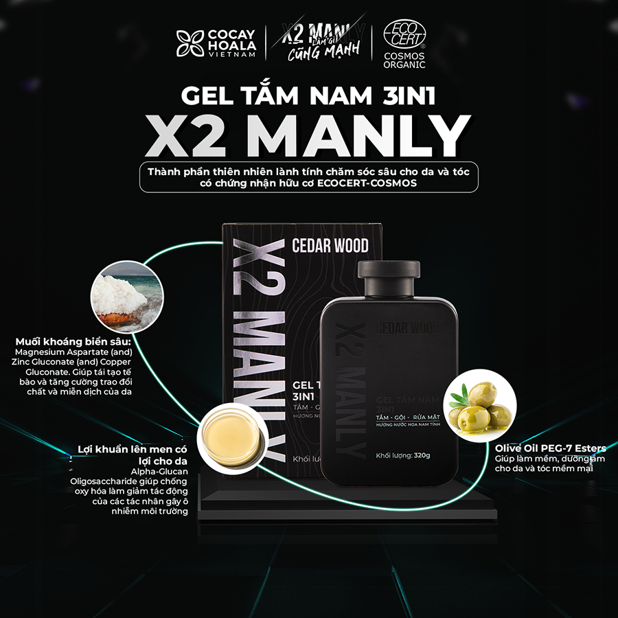 Gel Tắm Nam 3n1 X2 Manly TẮM – GỘI – RỬA MẶT Hương nước hoa nam tính