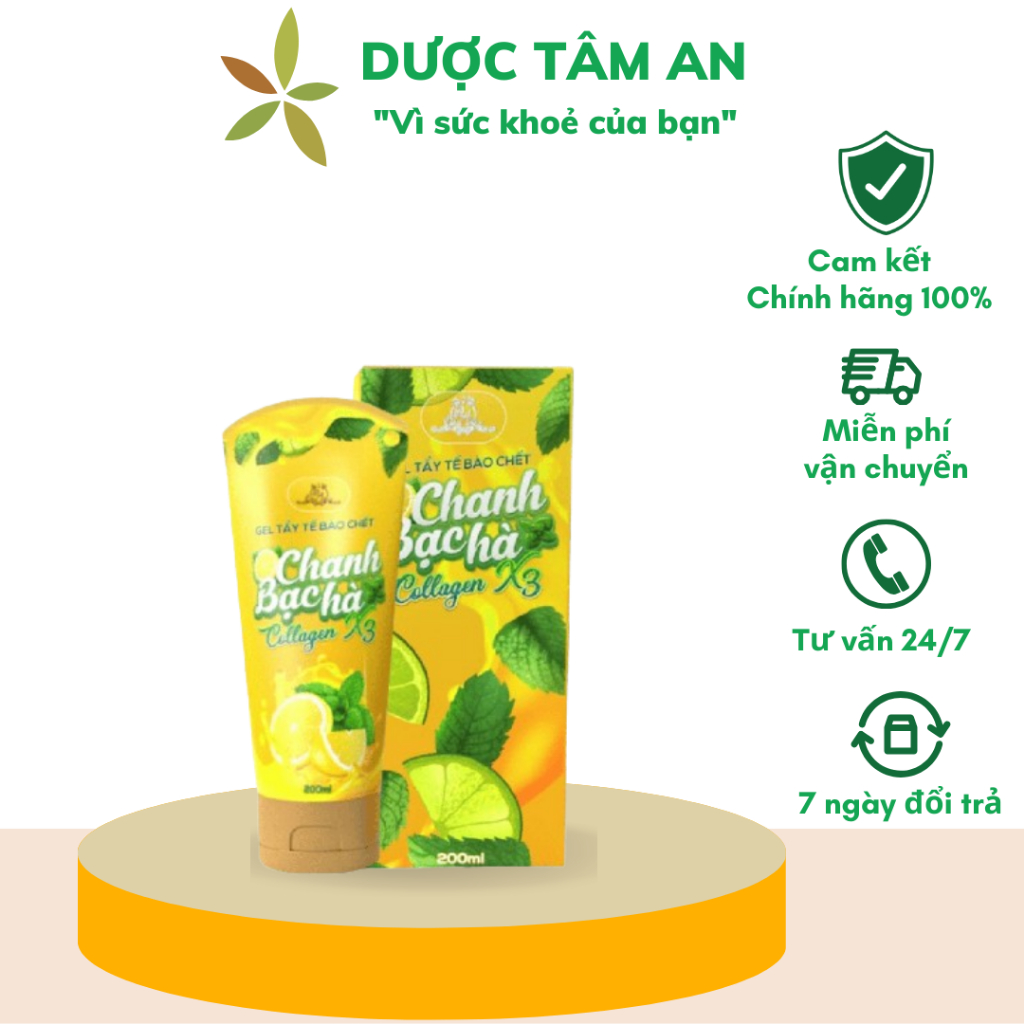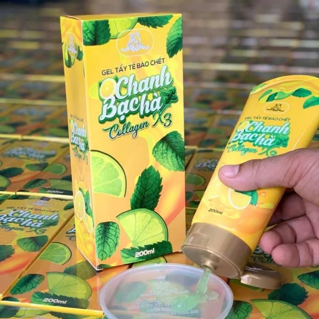 Gel tẩy tế bào chết collagen x3 chanh bạc hà giúp da mịn màng giảm thâm mụn mỹ phẩm đông anh chính hãng 200ml