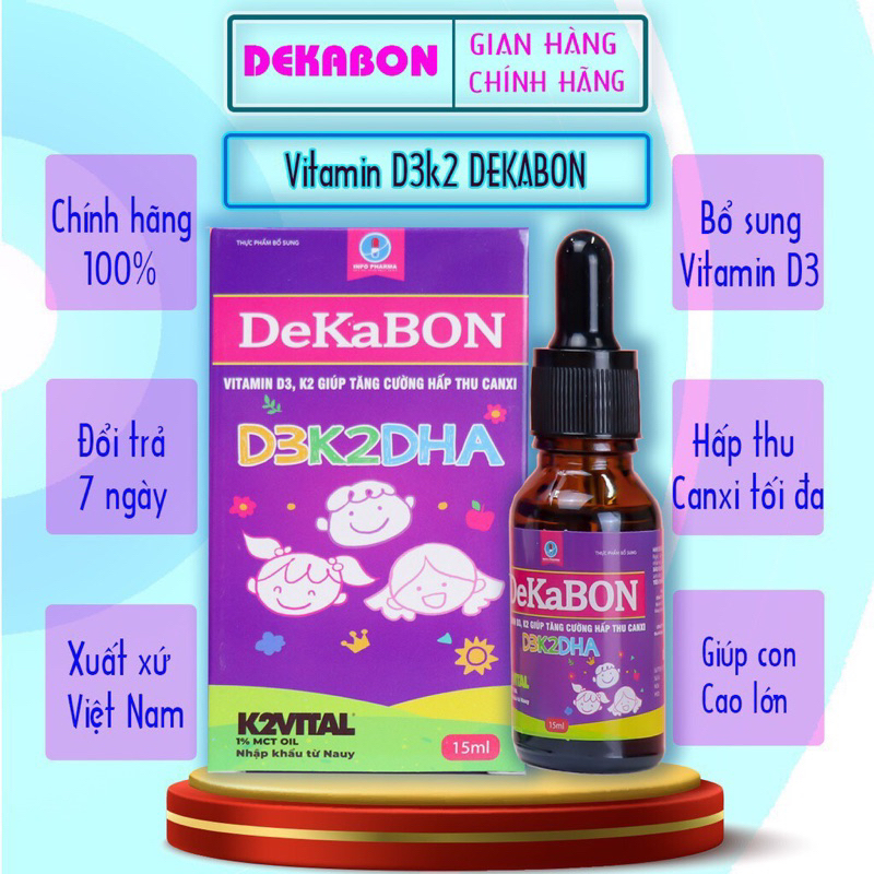 *** Vitamin D3K2 canxi hữu cơ giúp bé hấp thu canxi tăng cường đề kháng Dekabon