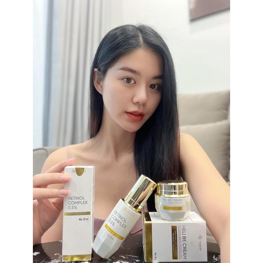 – Cách 1: Kết hợp kem phục hồi da Heli Cream với Retinol Complex 0.5%