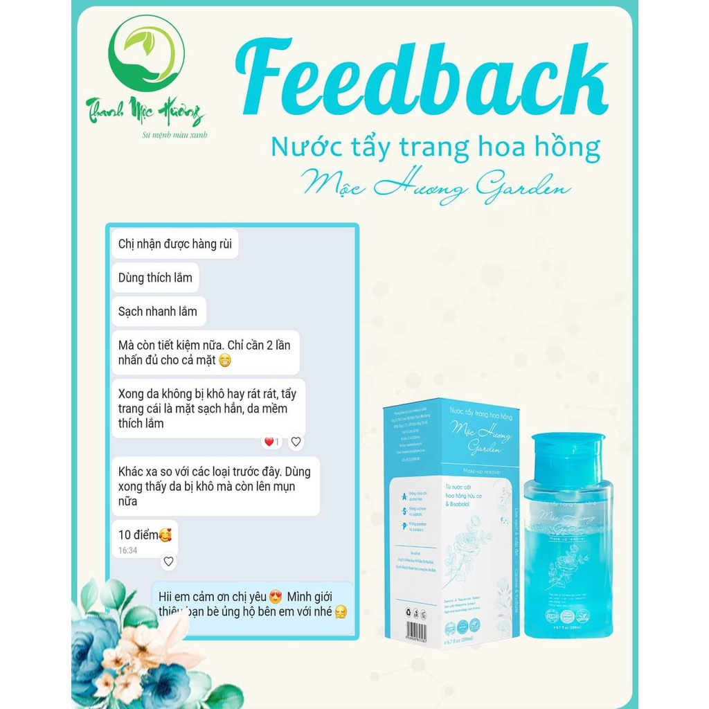 + CÔNG DỤNG :Nước tẩy trang hoa hồng Thanh Mộc Hương Mộc Hương Garden