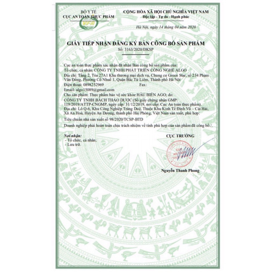 Thương nhân chịu trách nhiệm sản phẩm và phân phối: CÔNG TY TNHH PHÁT TRIỂN CÔNG NGHỆ ALGO