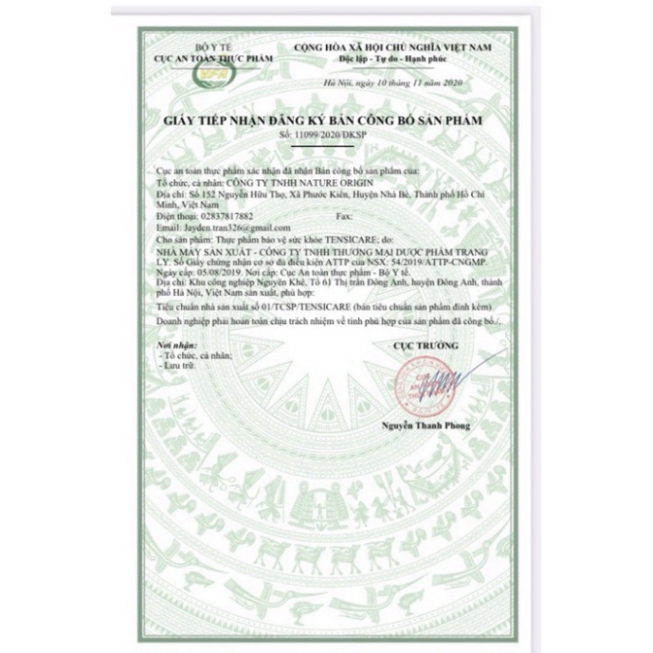 Tensicare là một sản phẩm có nguồn gốc với 100% thành phần là các dược liệu tự nhiên đã được nghiên cứu kỹ càng và sản xuất dựa trên dây chuyền hiện đại. Sản phẩm này đảm bảo an toàn và lành tính cho người sử dụng. Sản phẩm đã được kiểm chứng chất lượng bởi cục an toàn thực phẩm và được Bộ Y Tế cấp phép lưu hành toàn quốc theo số 11099/2020/ĐKSP.