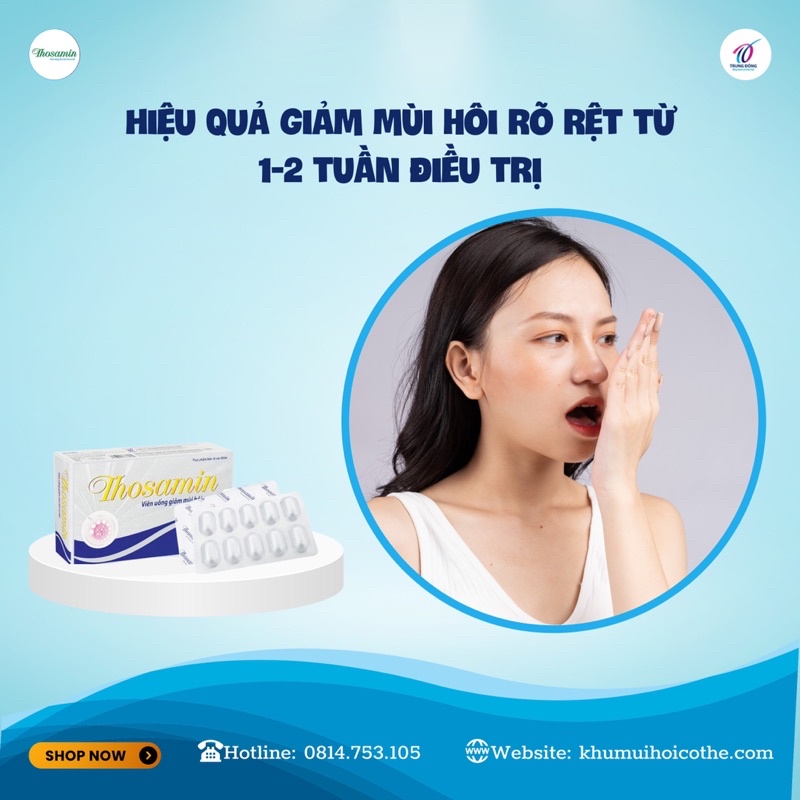 – Thoasamin với chức năng giúp cải thiện các vấn đề về mùi cơ thể: hôi nách, hôi chân, hôi miệng và một số mùi cơ thể khác. Người có hơi thở bị hôi do hội chứng trào ngược dạ dày thực quản.