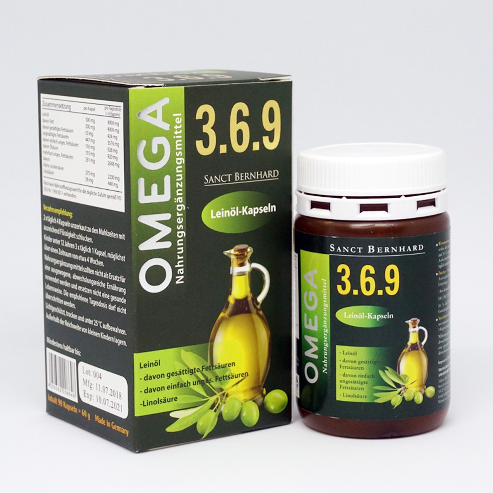 Sẵn Viên uống Omega 3 6 9 giảm mỡ máu, gan nhiễm mỡ, bổ mắt, bổ não, đẹp da Chính hãng Sanct Bernhard Đức Hộp 90 viên-TKUShop