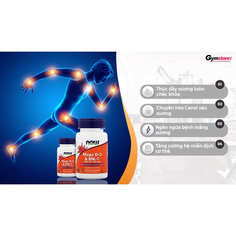 Viên uống Vitamin Now Mega D-3 & K-7 nhập Mỹ – Gymstore hỗ trợ tổng hợp Canxi, chống loãng xương-Tổng Kho Úc Shop