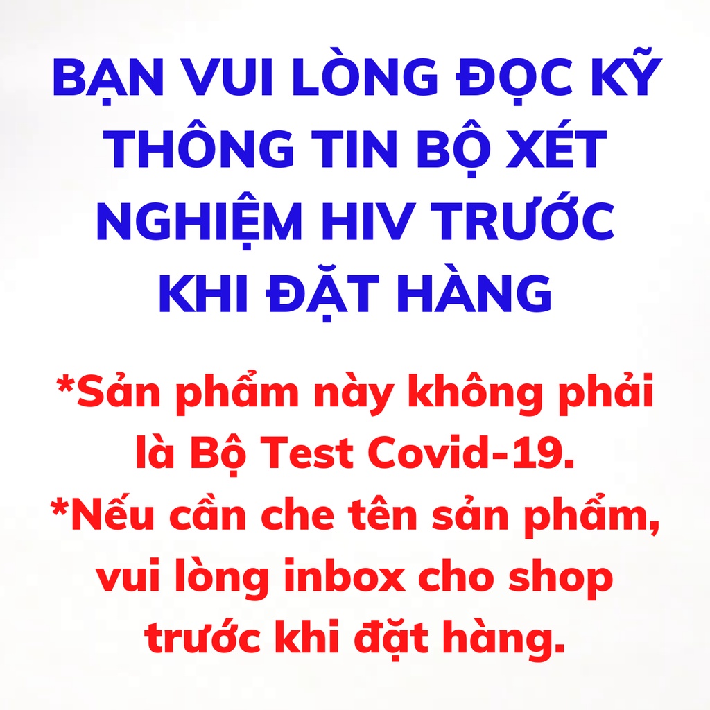 * Bộ Test HIV nhanh tại nhà này Shop có che tên sản phẩm trên hộp, nhưng nếu bạn cần che tên với Shiper thì hãy inbox cho shop để shop gửi cho bạn link tên sản phẩm không có chữ HIV nhé! Nếu bạn cần tư vấn chi tiết thì vui lòng nhắn tin cho shop.
