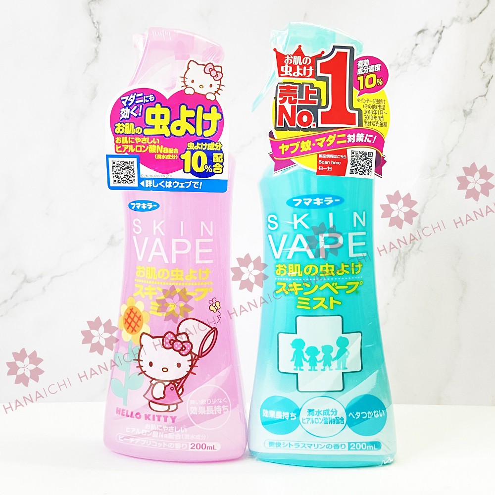 Xịt chống muỗi Skin Vape được xem là sản phẩm quốc dân tại Nhật Bản bởi hiệu quả đuổi muỗi, chống côn trùng cắn ưu việt dành cho cả người lớn và trẻ nhỏ. Sản phẩm này có thành phần lành tính và an toàn tuyệt đối với người sử dụng.