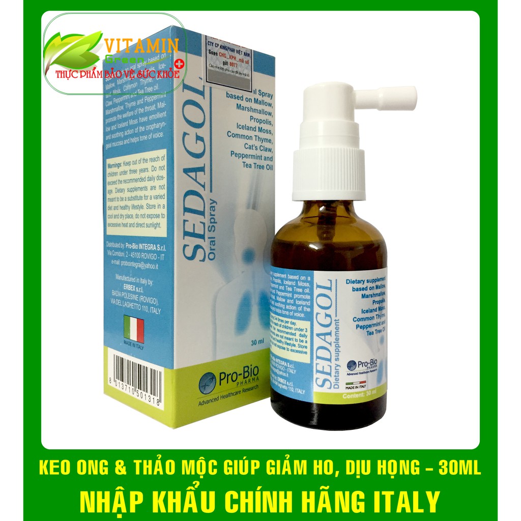 XỊT GIẢM ĐAU RÁT HỌNG SEDAGOL ORAL SPRAY KEO ONG VÀ THẢO DƯỢC (30ml) | NHẬP KHẨU CHÍNH HÃNG ITALY-Tổng Kho Úc Shop