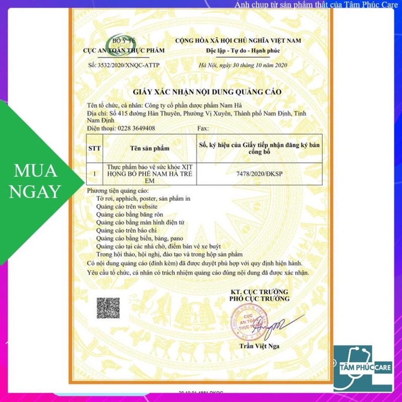 – Thực phẩm này không phải là thuốc và không có tác dụng thay thế thuốc chữa bệnh