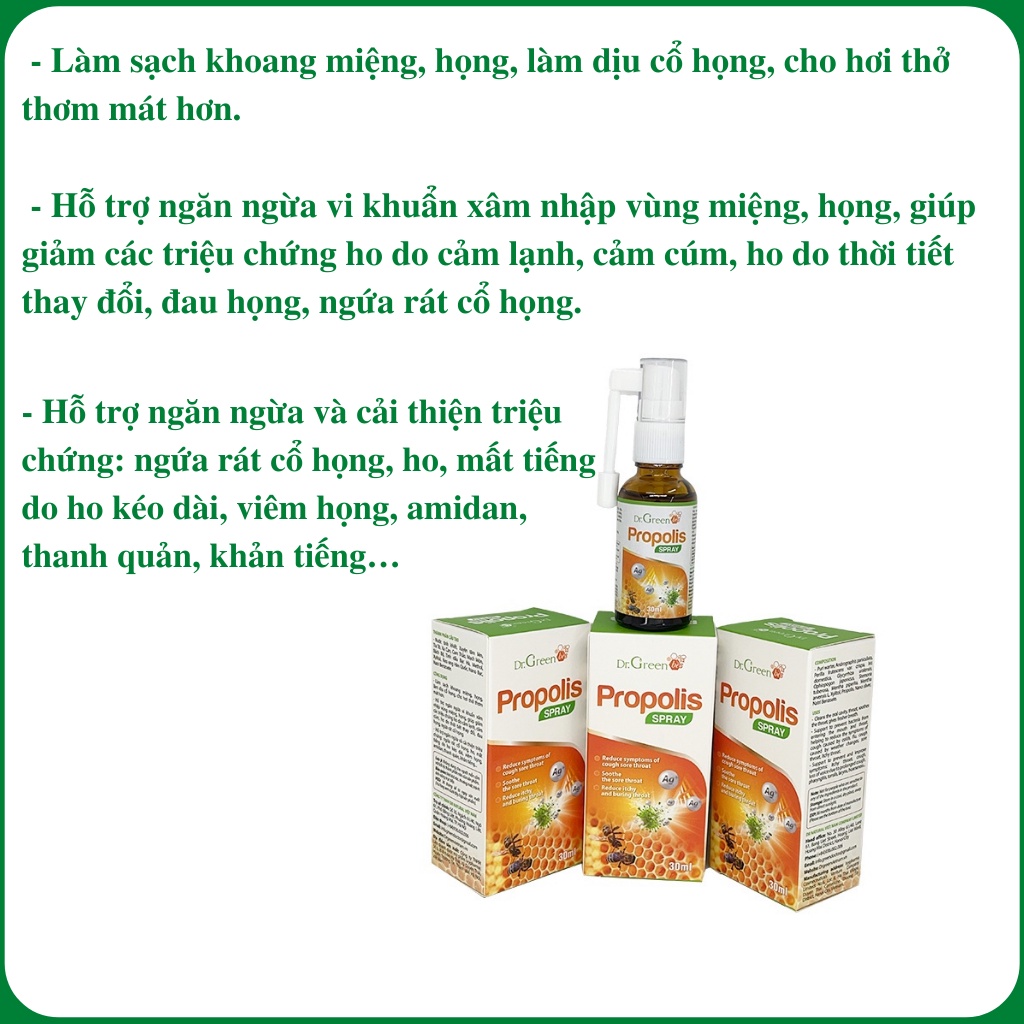 CÔNG DỤNG XỊT HỌNG KEO ONG DR.GREEN BEE