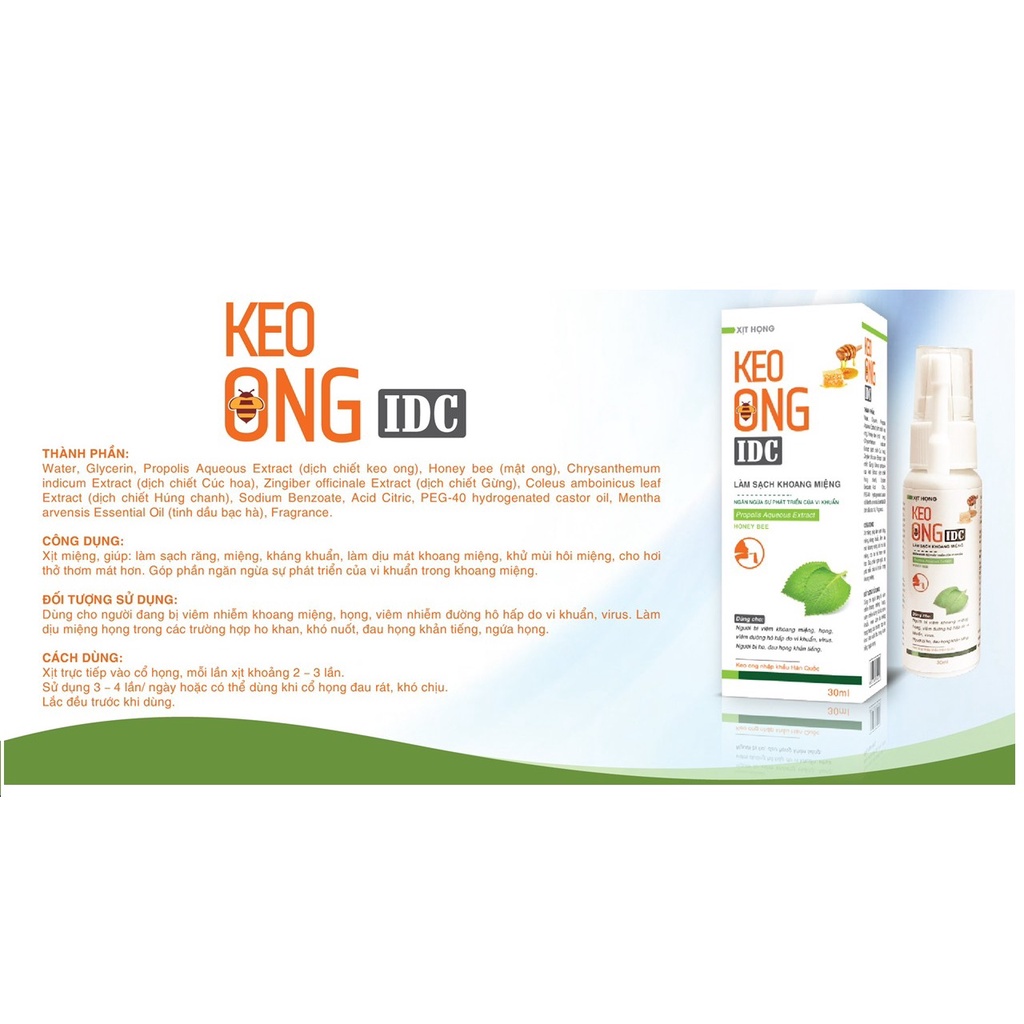Cảm cúm, đau họng, khản tiếng ảnh hưởng nhiều tới sinh hoạt của mỗi chúng ta, chính vì vậy hãy sử dụng xịt họng keo ong IDC để giảm tình trạng trên, ngoài ra nó còn giúp khử sạch răng miệng, đem lại hơi thở thơm mát