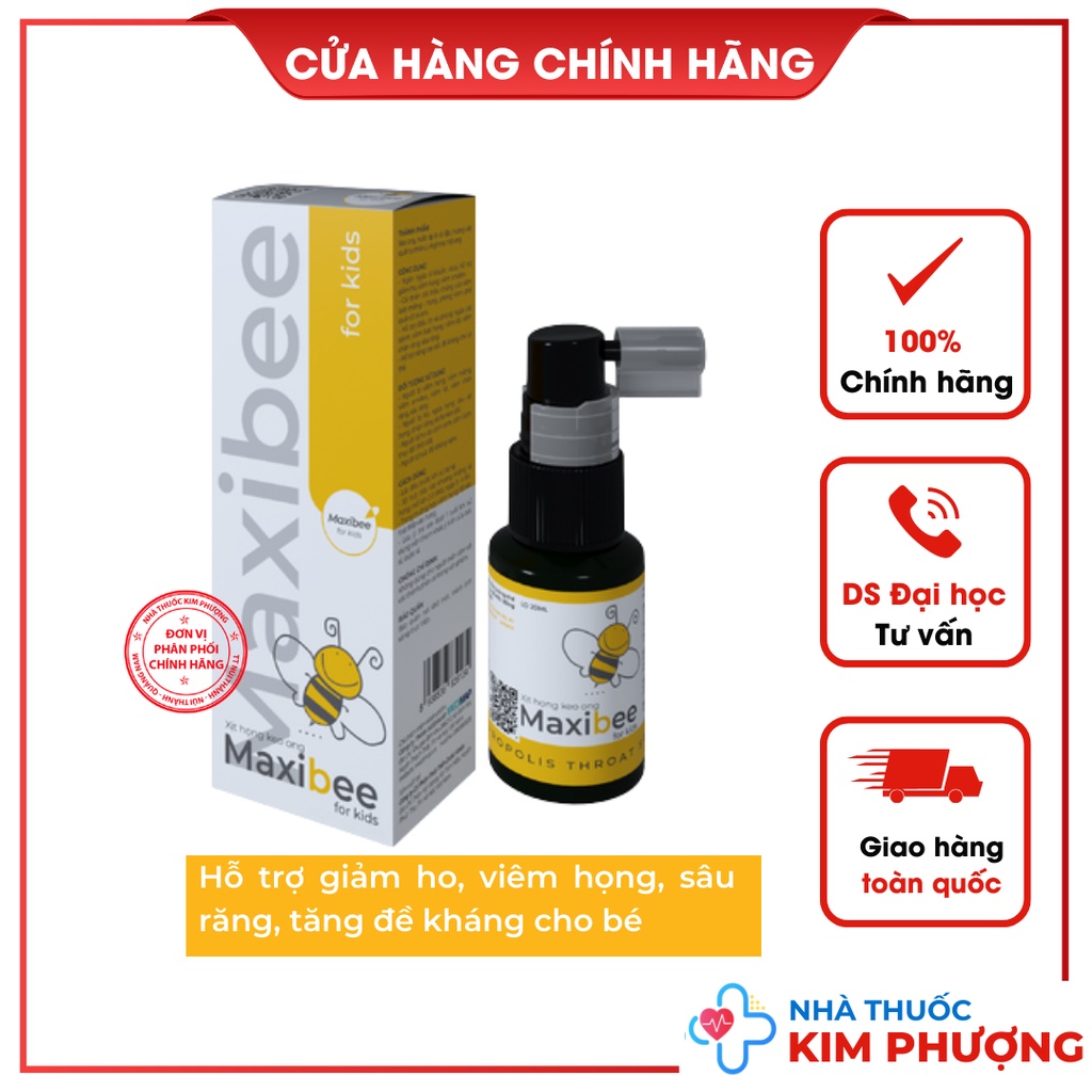 Xịt họng keo ong Maxibee Kids Giảm ho, giảm khò khè, giảm đau họng, tăng miễn dịch cho bé