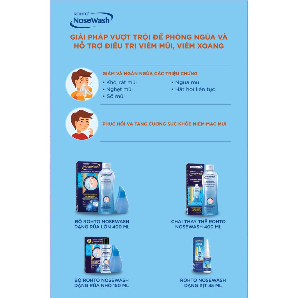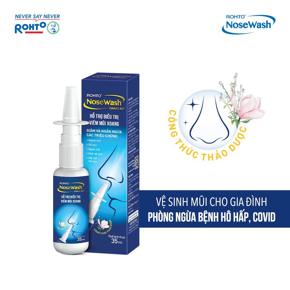 – Xịt mũi viêm xoang thảo dược Rohto Nosewash giúp phục hồi và tăng cường sức khỏe niêm mạc mũi.