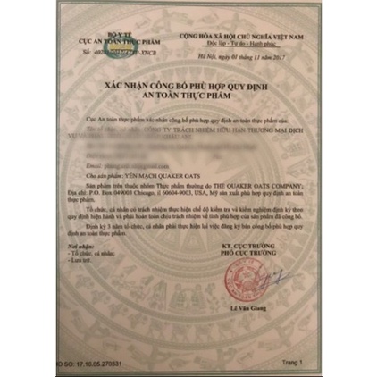 1. THÔNG TIN SẢN PHẨM YẾN MẠCH NGUYÊN HẠT QUAKER OATS